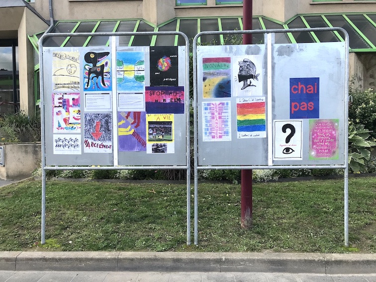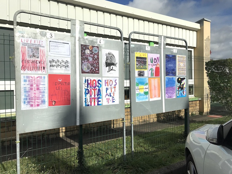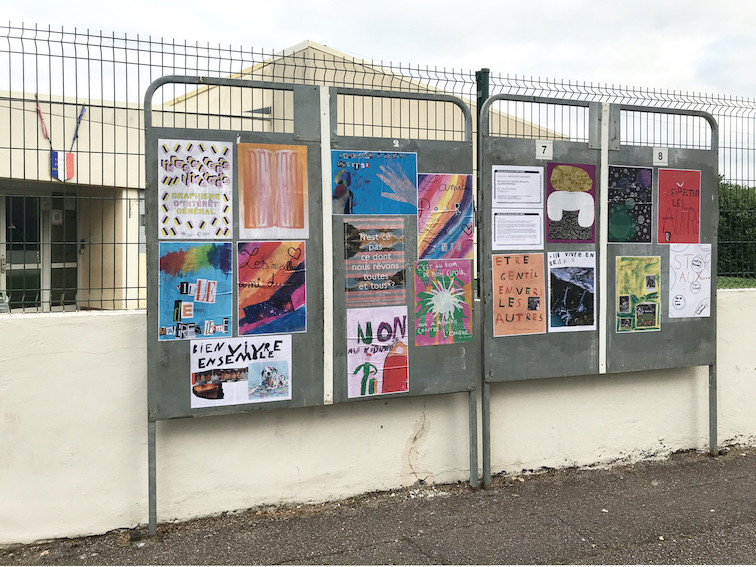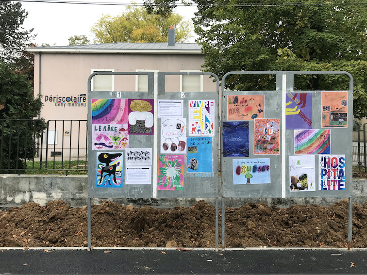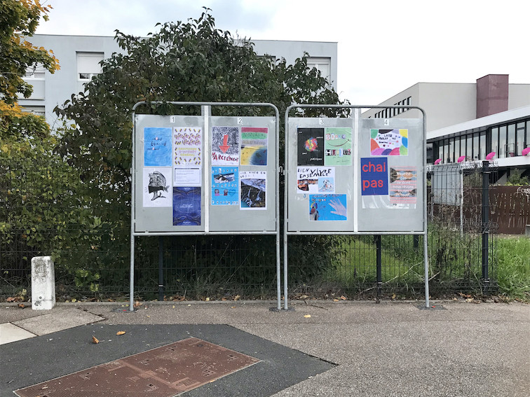 Les affiches de la commande MESSAGES/IMAGES ainsi que celles réalisées lors des ateliers organisés pendant l'exposition sont présentées dans la salle d'exposition de la médiathèque Georges Brassens mais aussi dans la ville de Maizières-lès-Metz. Il est possible de les retrouver sur les panneaux électoraux installés pour l'occasion devant la Mairie, le parc Dany Mathieu, rue Charles Calmette, avenue de Brieux, place Marcel Serdan, ... L'ensemble des affiches ne sera pas collé sur les panneaux. Les réalisations sont bien trop nombreuses (environ 110) ! En revanche, elles sont toutes visibles dans l'espace d'exposition de la médiathèque Georges Brassens.