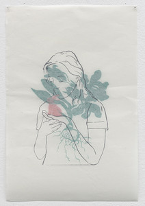 Attachée au livre et à l'immédiateté du dessin, elle pratique aussi la céramique, la peinture et plus récemment la vidéo. Sur le papier ou sur la toile, adolescents, poupées, animaux à l'identité incertaine fusionnent par capillarité. Des secrets, des inquiétudes germent avec la couleur, la mélancolie se dilue tendrement dans l'aquarelle et l'encre. La féminité prend un tour mythique et l'intimité s'ouvre sur le monde.
