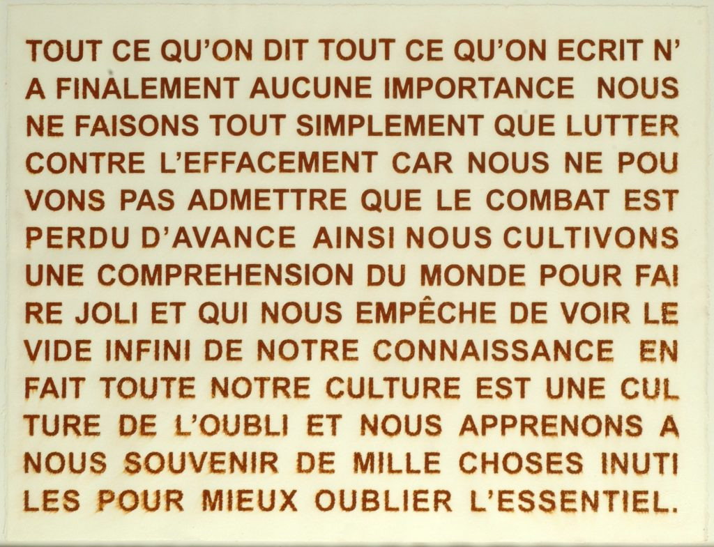 Le papier rouillé est le résultat d’une technique que Pierre Gaucher a inventé. C'est une impression à partir d’une tôle d'acier en contact avec une feuille de papier mouillée. Celle-ci s’imprègne petit à petit de la rouille présente sur la tôle. Il n’y a pas d’encre, c’est la tôle qui fournit le pigment naturel. - Éditeur·ice